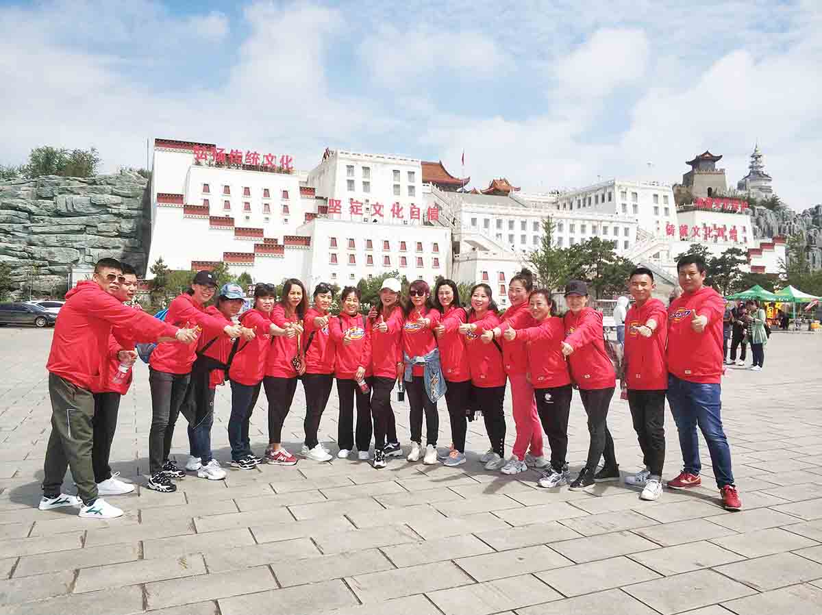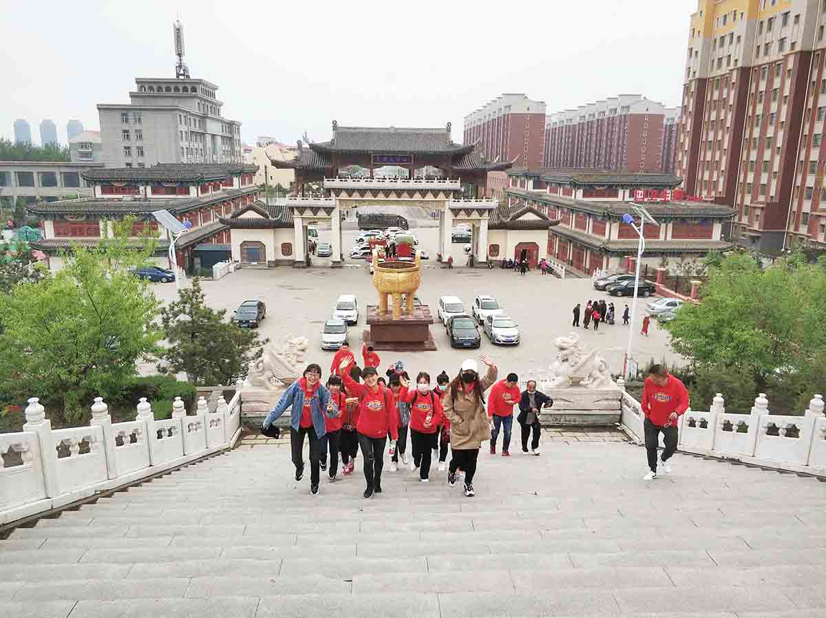 5月9日(周六)早8:00,天氣清爽。公司為大家精心準(zhǔn)備豐盛的食品也都分發(fā)下去了,整理隊伍,我們在公司門口合影留念后紛紛上車前往目的地,伙伴們在途中有說有笑,熱情不減,情緒高昂,經(jīng)過半個小時的輾轉(zhuǎn),順利到達(dá)目的地凌海九華山,我們先吃了點食物稍作休息,整理隊伍在山門口合影留念。