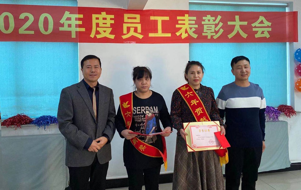 閆希東、薛曉娟獲得2020年度十年貢獻(xiàn)獎(jiǎng),十年的堅(jiān)守不渝,十年的默默耕作,他們把最美好的青春韶華賦予了我們?yōu)橹餐瑠^斗的事業(yè),十年如一日他們時(shí)刻心系企業(yè)的憂患,與企業(yè)同風(fēng)雨共命運(yùn),正是因?yàn)樗麄兊母冻鰟P為的今天才如此絢麗。公司總經(jīng)理王鐵良與銷售部經(jīng)理趙福寬為獲獎(jiǎng)?wù)哳C發(fā)榮譽(yù)證書。