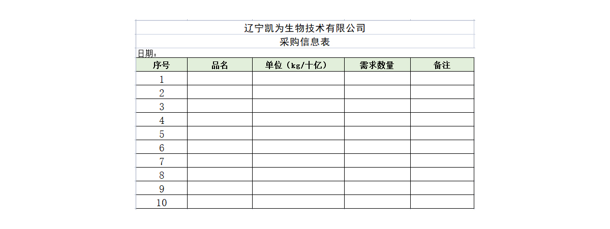 遼寧凱為生物技術有限公司采購信息表